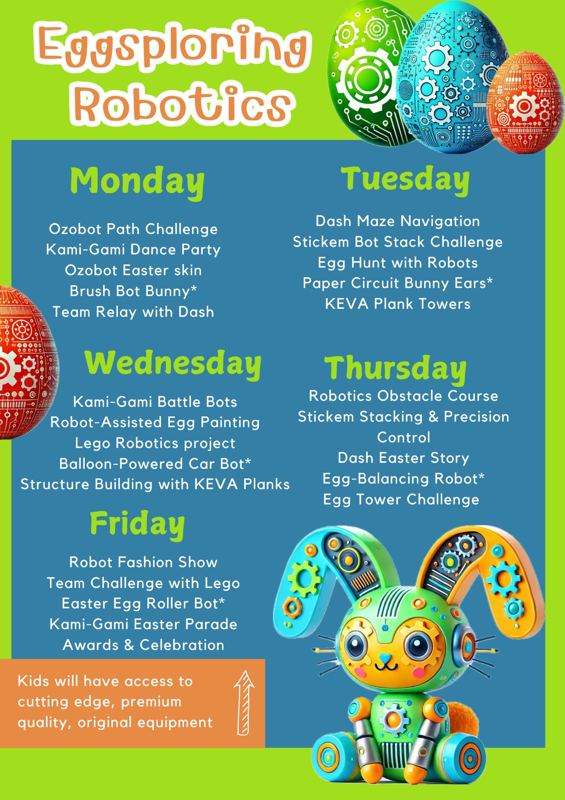 Easter holiday camp is a combination of fantasy and science. Your child will play and have fun, while at the same time learning something new and interesting about nature, invention, creativity, 3D modeling, engineering programming, manufacturing, and much more.